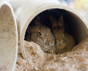 Stelle sie viele Versteckmöglichkeiten auf. Aber Achtung, ein Versteck sollte immer zwei Ausgänge haben, sonst könnte ein Kaninchen in der Falle sitzen und kommt nicht mehr davon.