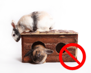 Verzichten Sie auf handelsübliche Kaninchenhäuser, welche nur einen Eingang haben. Diese sind nicht ideal. Kaninchen brauchen immer einen Fluchtweg.